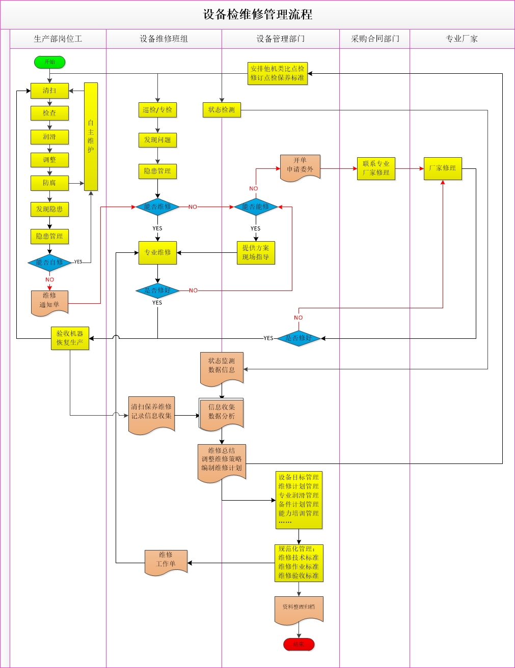 该流程属于深圳三基咨询公司首席顾问鄢文军老师,根据30多年现场设备管理知识和实践经验总结编制,是一个适用于大多数企业的标准化管理流。